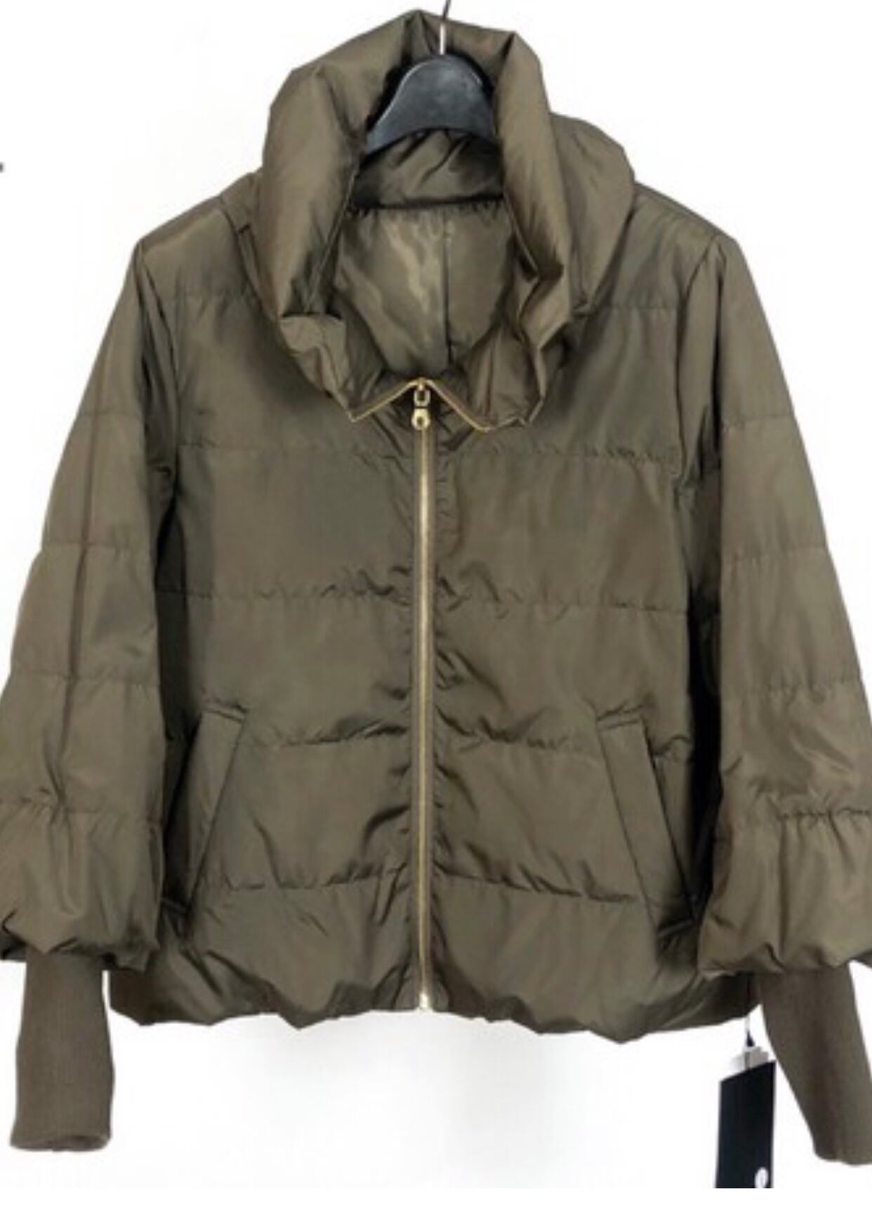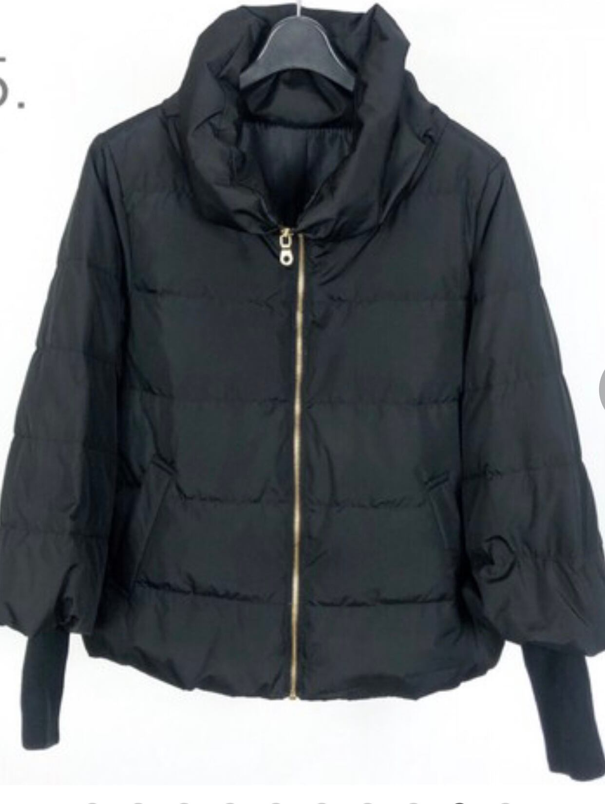 ゴールドのファスナーと袖口のロングリブが可愛いダウンジャケットです。