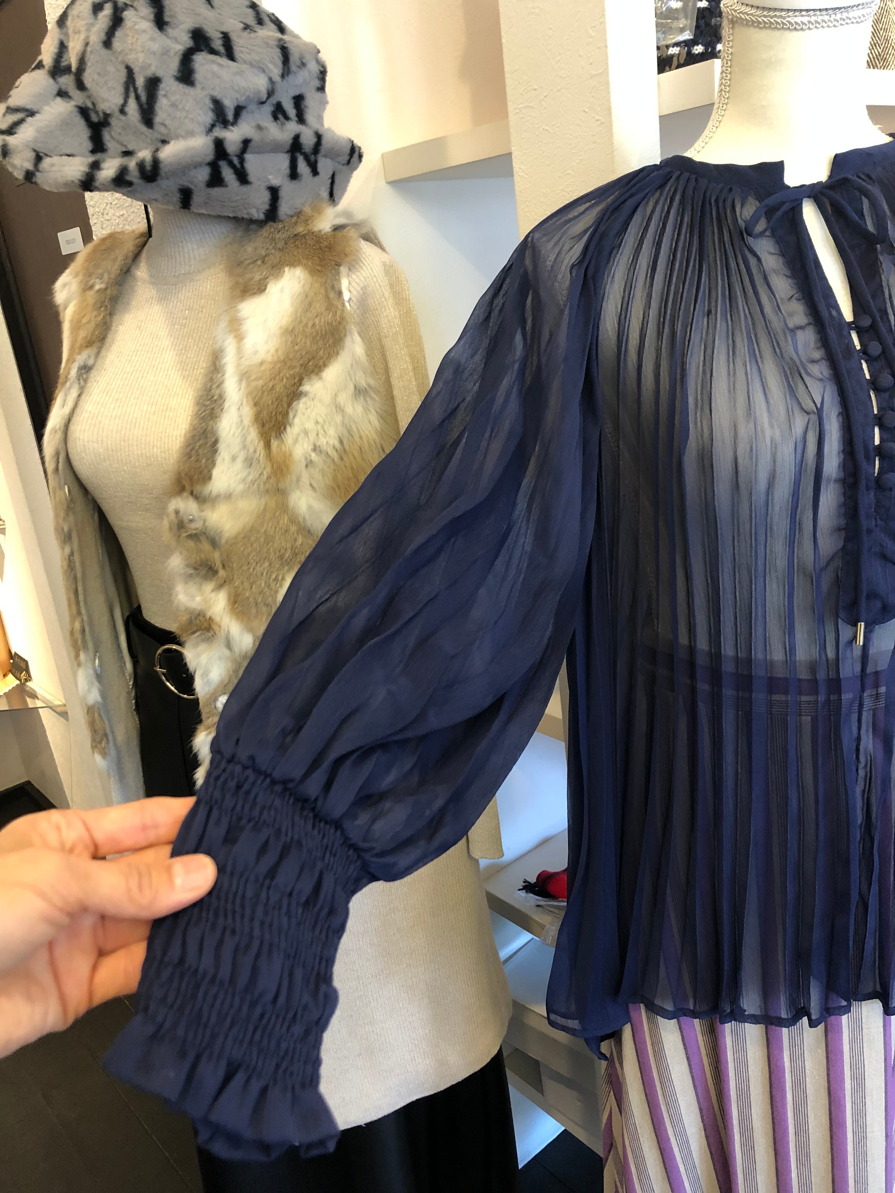 シースルー&ベルスリープが女性らしいブラウスです。