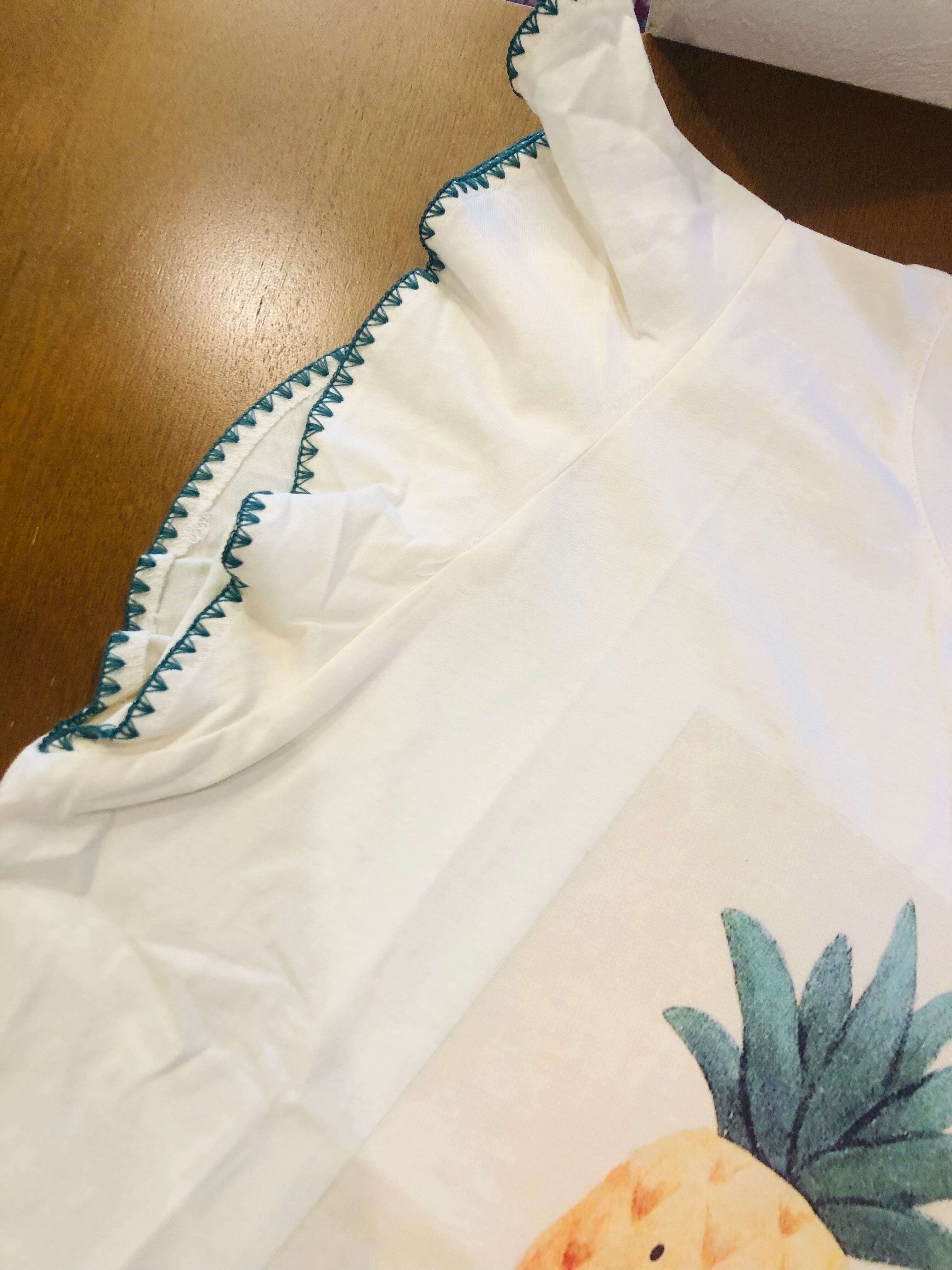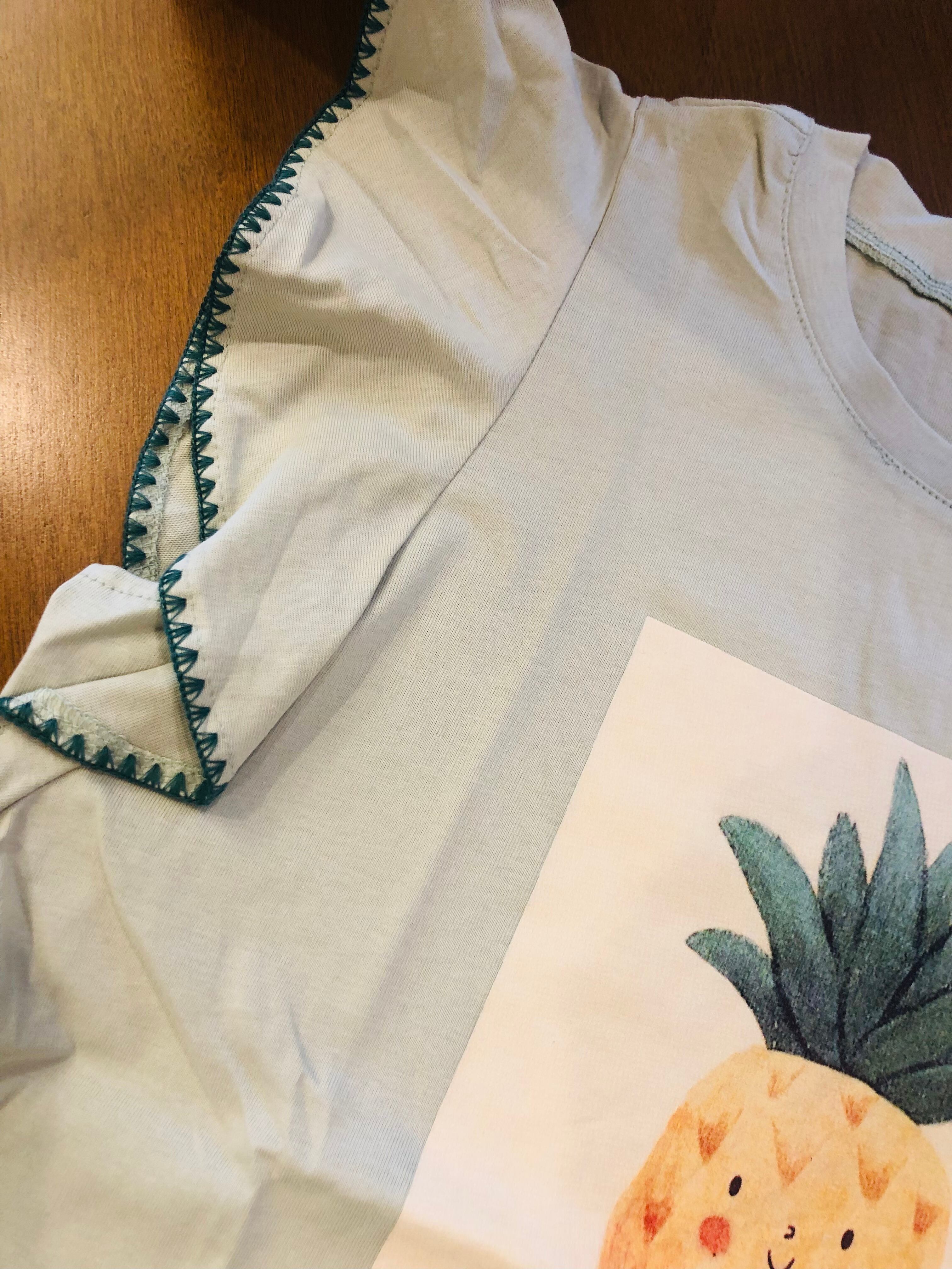 袖フリルが可愛いパイナップルプリントTシャツです❣️