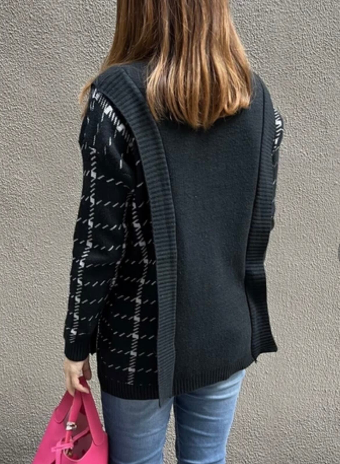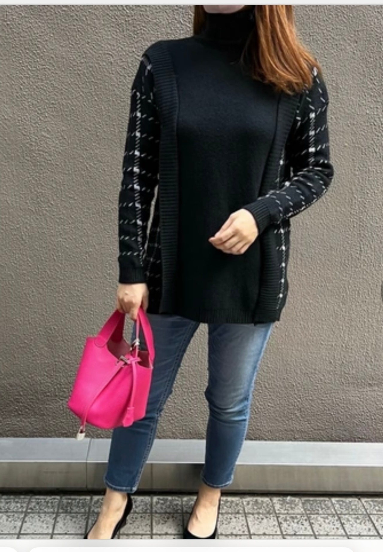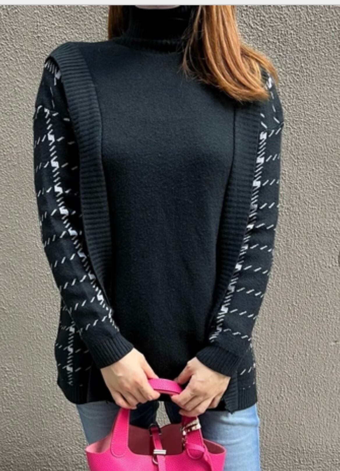 袖切り替えタートルニットセーター