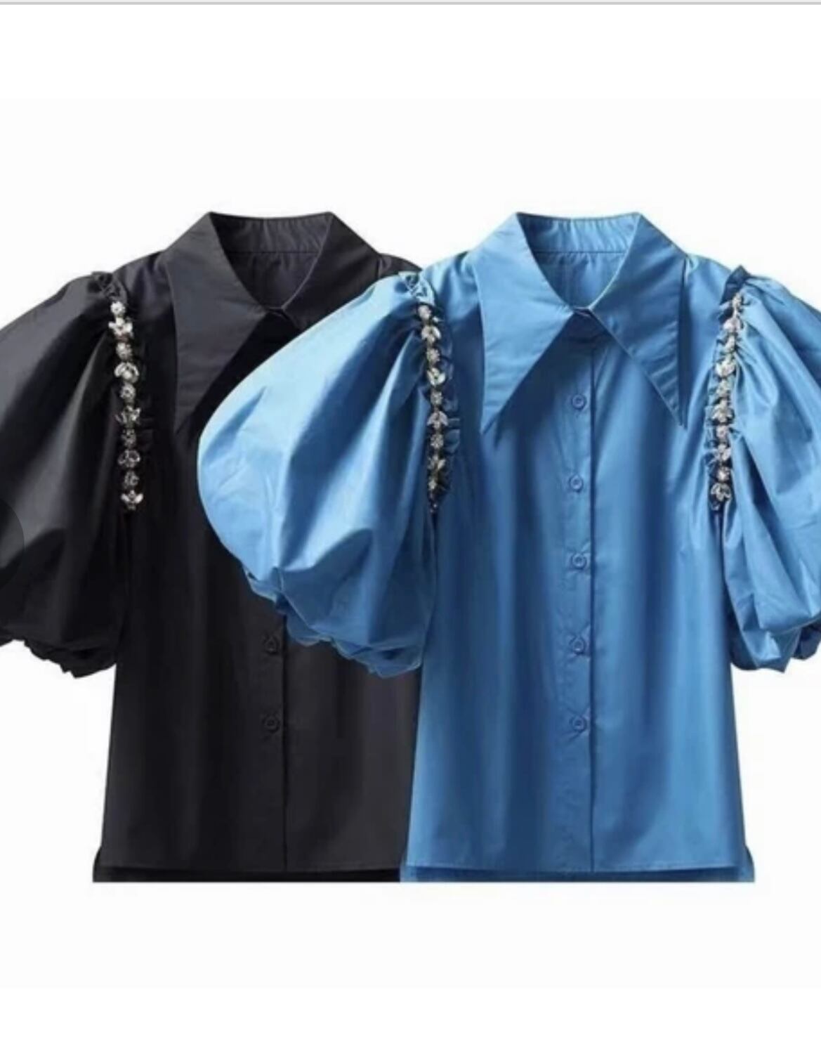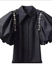 大きめビジューと袖バルーンがとっても大人可愛いブラウスです。