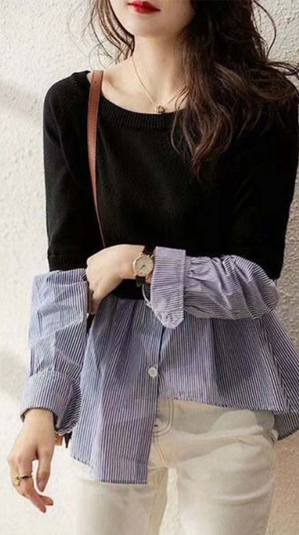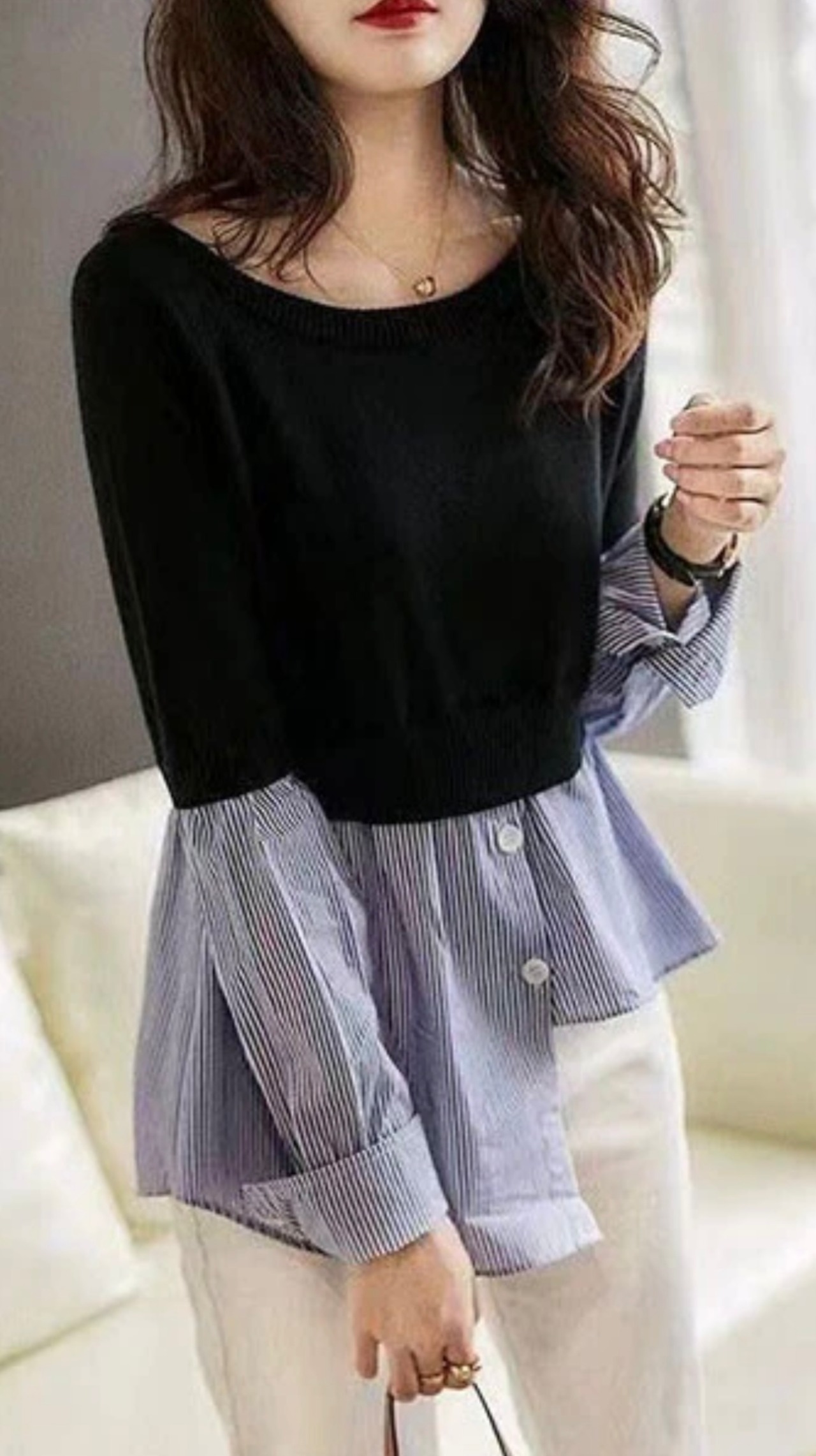ニットドッキングストライプシャツ